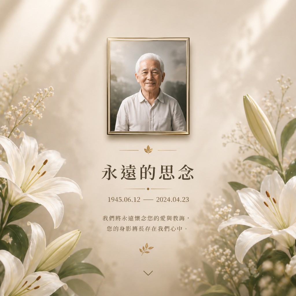 自行管理數位訃聞頁面,讓您快速建立一份莊重而溫暖的線上訃告,讓客戶能即時分享給所有親友。